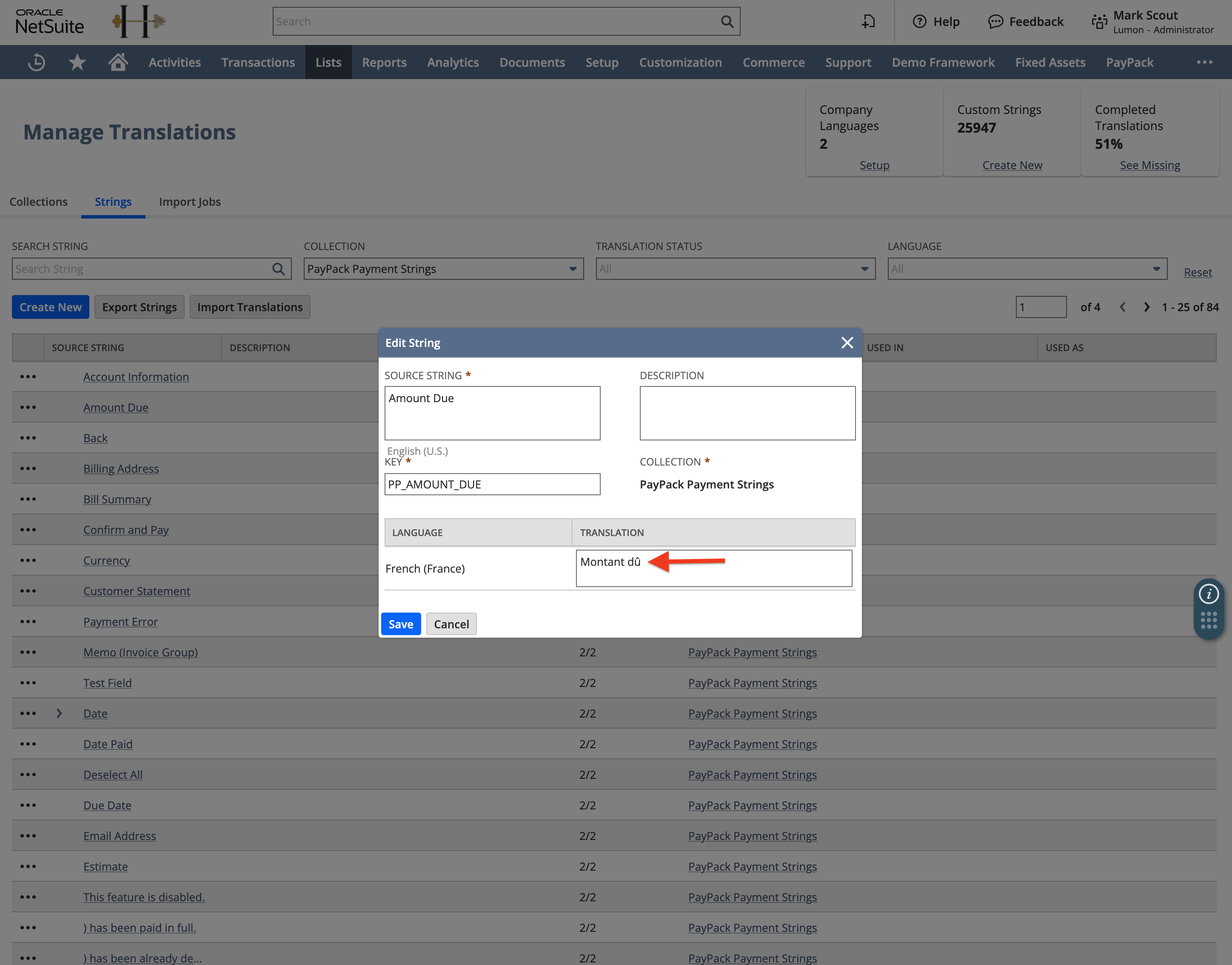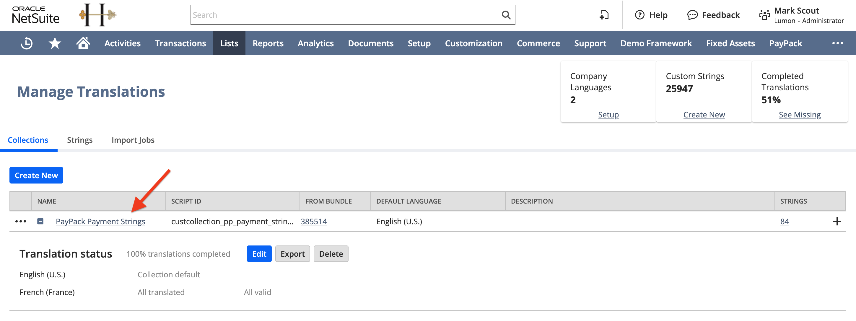 NetSuite Manage Translations is a powerful feature for globalizing your NetSuite instance, allowing administrators to centralize and manage text for different languages using Translation Collections. This is helpful when needing to display the PayPack Payment Link for different languages such as English or French.