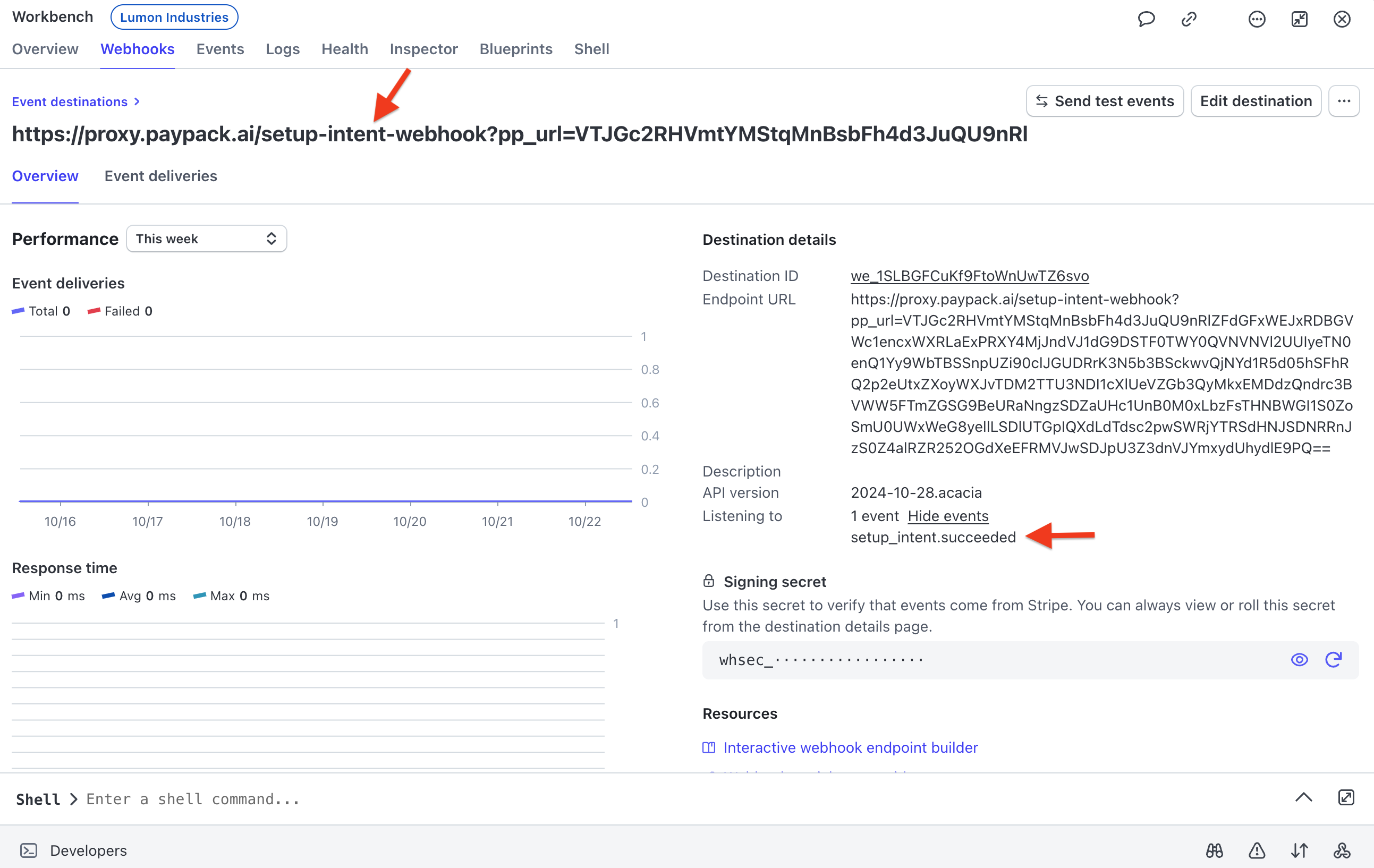 PayPack stores mandates using the a webhook by observing the Stripe setup intent success events.