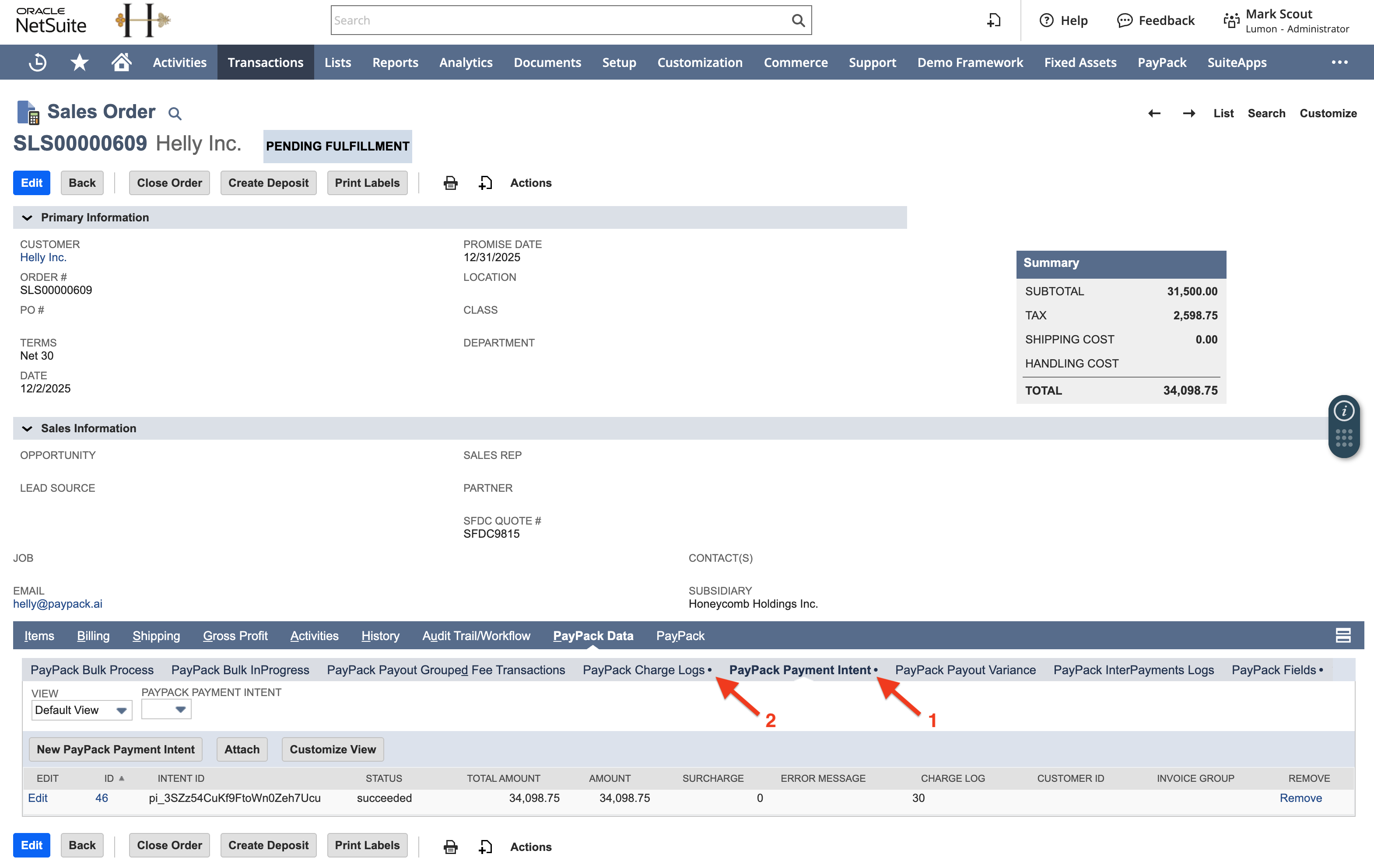 PayPack Payment Intent (Custom Record): Logs the initial payment attempt and should include the necessary field data referenced above for the Sales Order workflow.